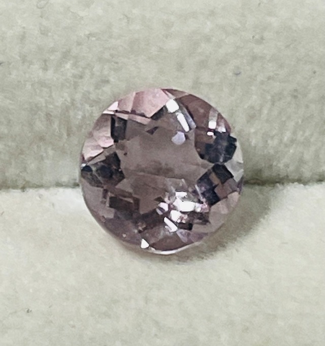 ピンクフローライト ラウンドカット 1.69ct 7.0×7.0×5.0 産地不明 淡いラベンダーピンクのフローライト。紫色の蛍光反応を示します。 インクルージョン少なく、きれいなルースです。 カットは綺麗で照りもあります。 3枚目の写真が裏側です。4枚目の写真が蛍光反応です。