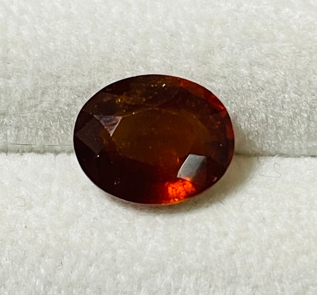 ヘソナイトガーネット OVカット 3.33ct 10.2×8.3×4.7 スリランカ産 落ち着いたオレンジ色のガーネット。ヘソナイトガーネットはグロッシュラーガーネットの分類に入ります。 特有の糖蜜状組織のインクルージョンが見られシルキーなルース。 カットはそこそこきれいです。 3枚目の写真が裏側です。