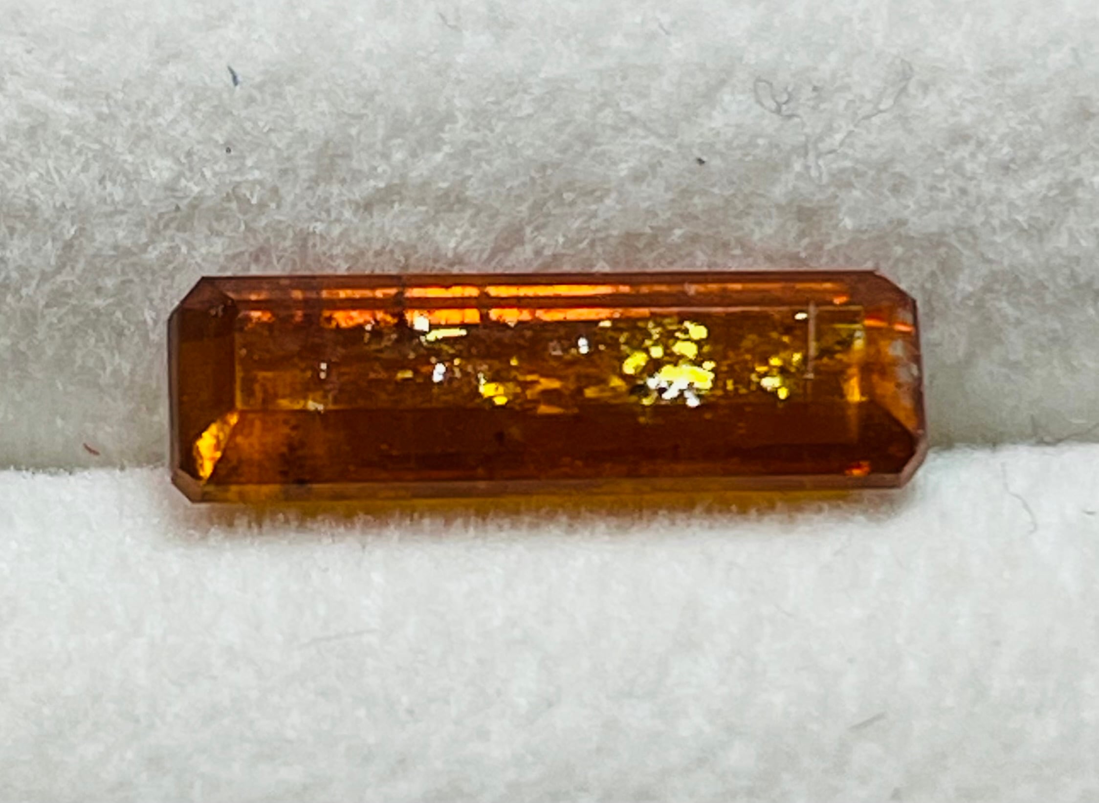細長く、厚みのあるカットのオレンジカイヤナイト。