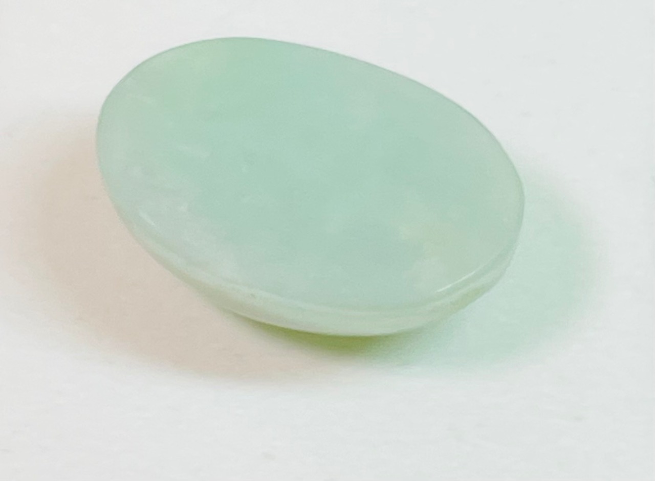 優しい薄いグリーンのジェイダイト。不透明で、白っぽい色むらが見られます。