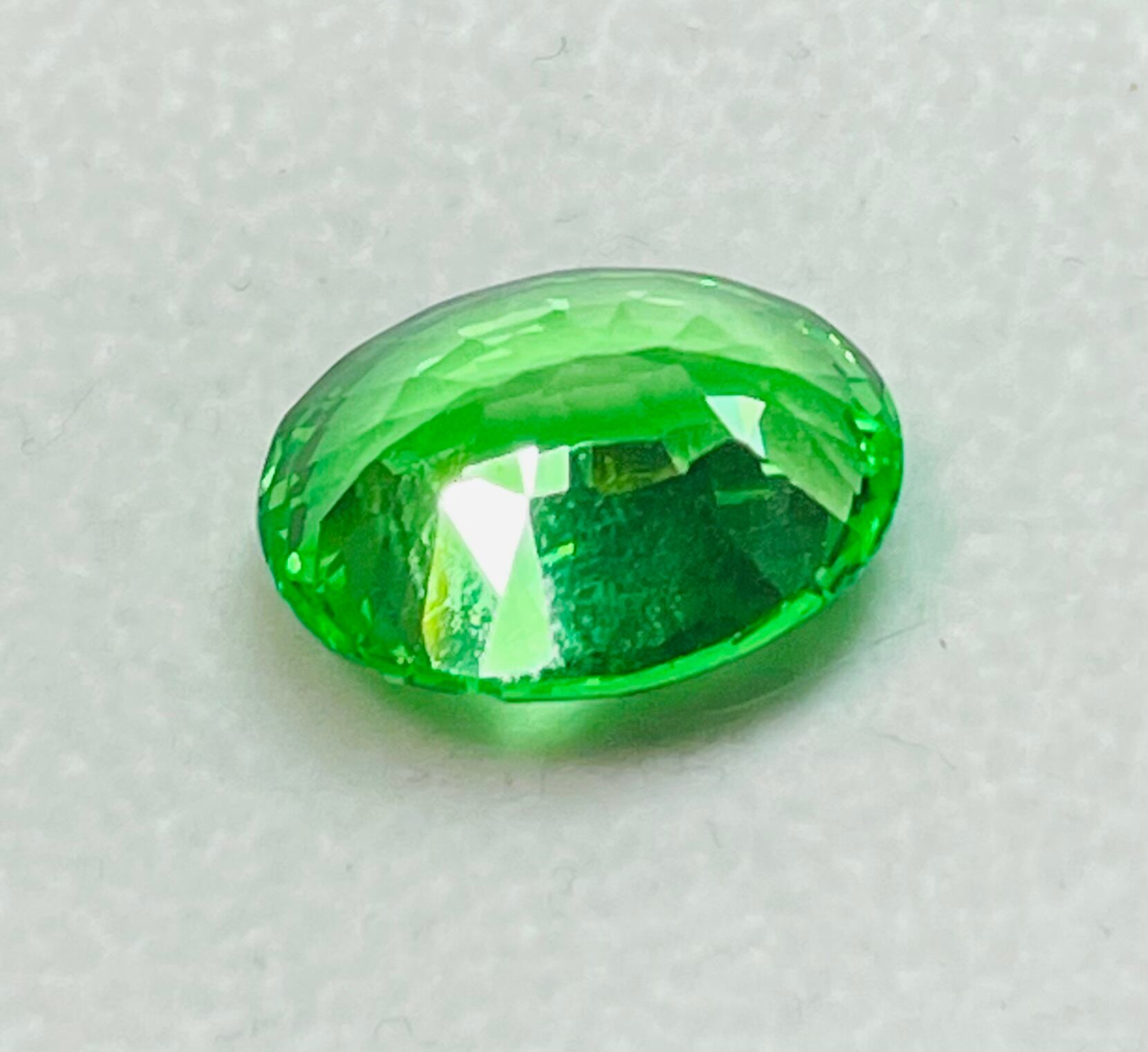 ミントガーネットのような鮮やかな緑色の合成サファイアです。