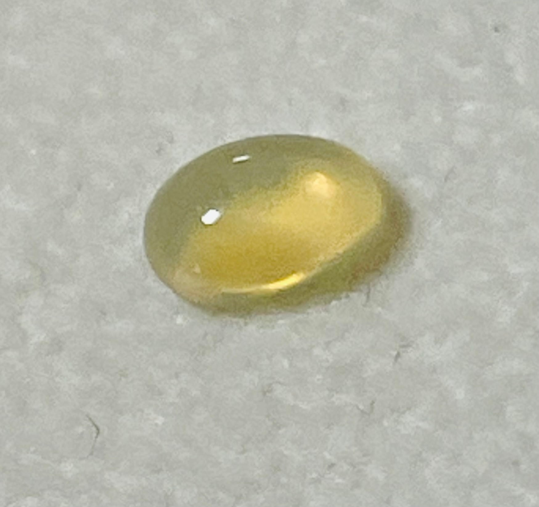 薄いイエロー色の地に、光を当てると緑色っぽい遊色がぼんやりと出ます。
