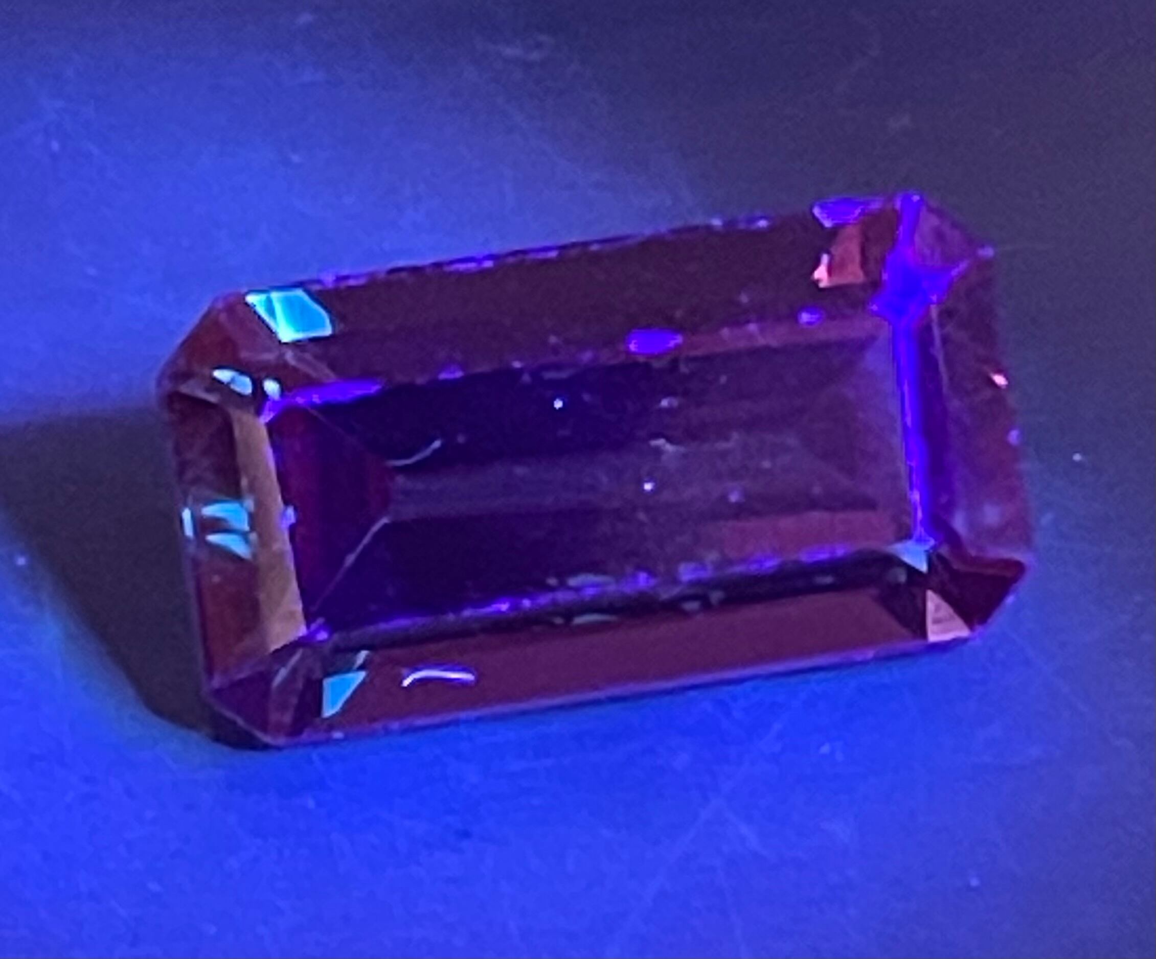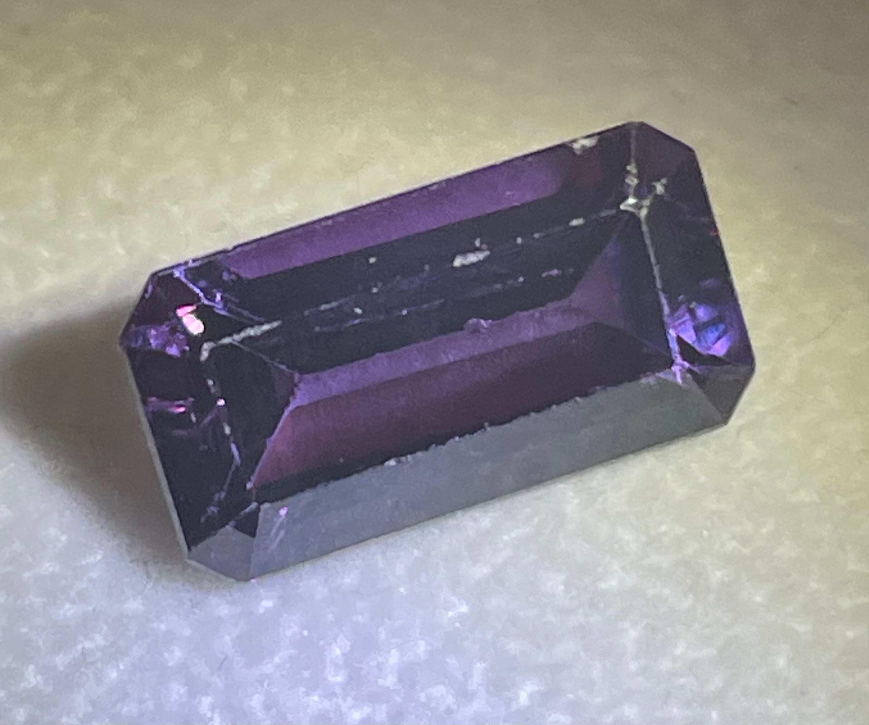 合成カラーチェンジサファイア スクエアカット 7.85ct 少し難あり