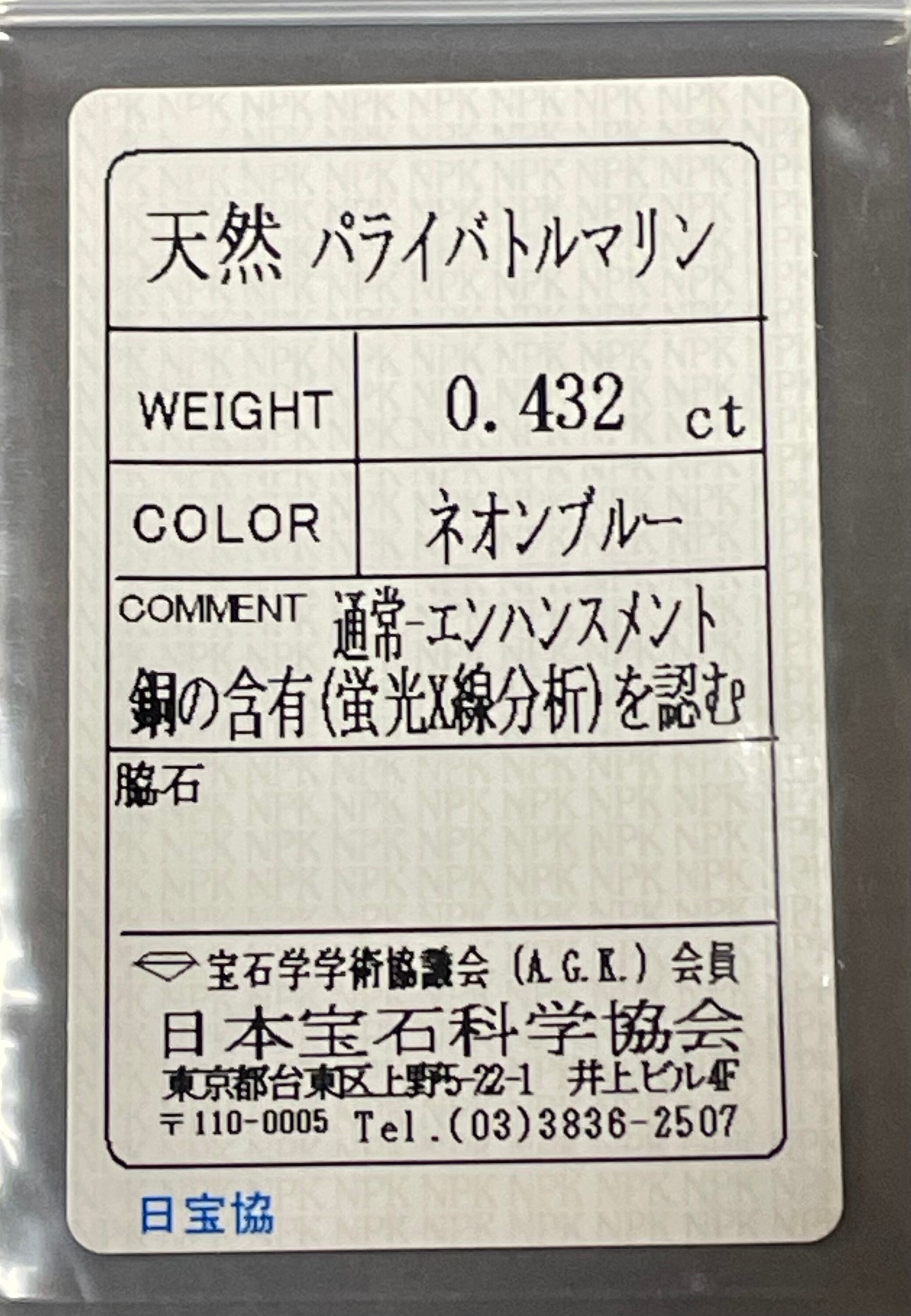 パライバトルマリン ペアシェイプカット 0.432ct ソーティング付