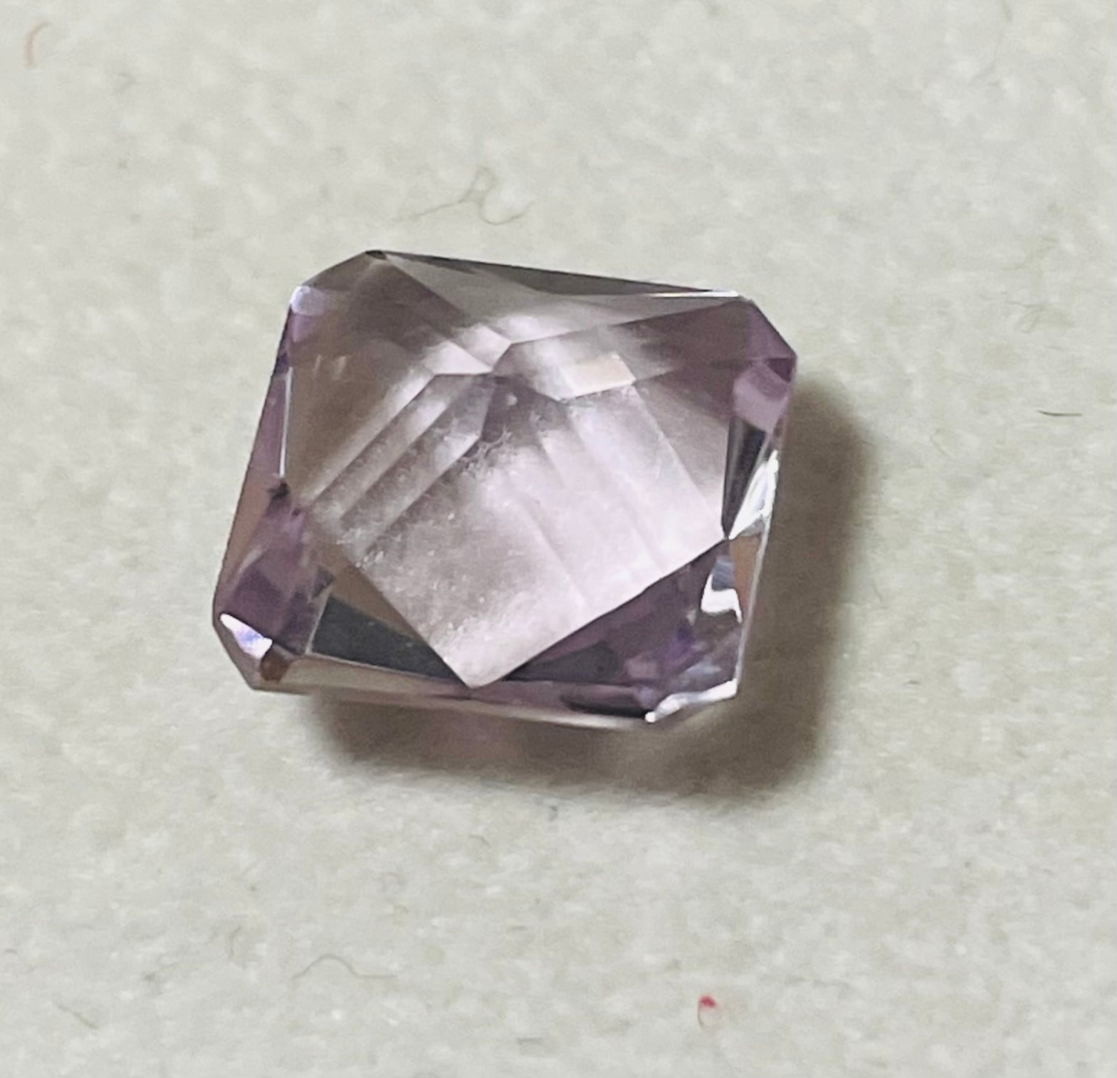 薄いラベンダーピンクのアメジスト。カットが美しく、照りがあります。