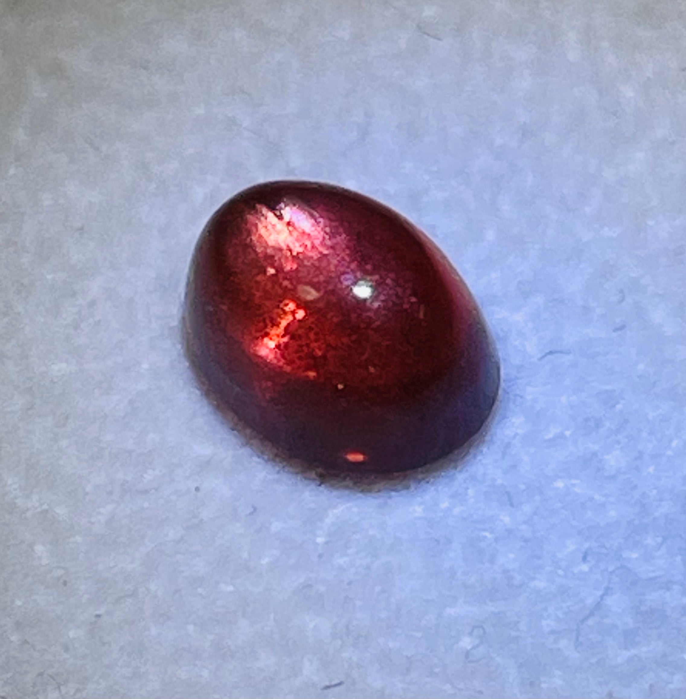 美しい赤色のオレゴンサンストーン。背の高いカボションで綺麗なカット。