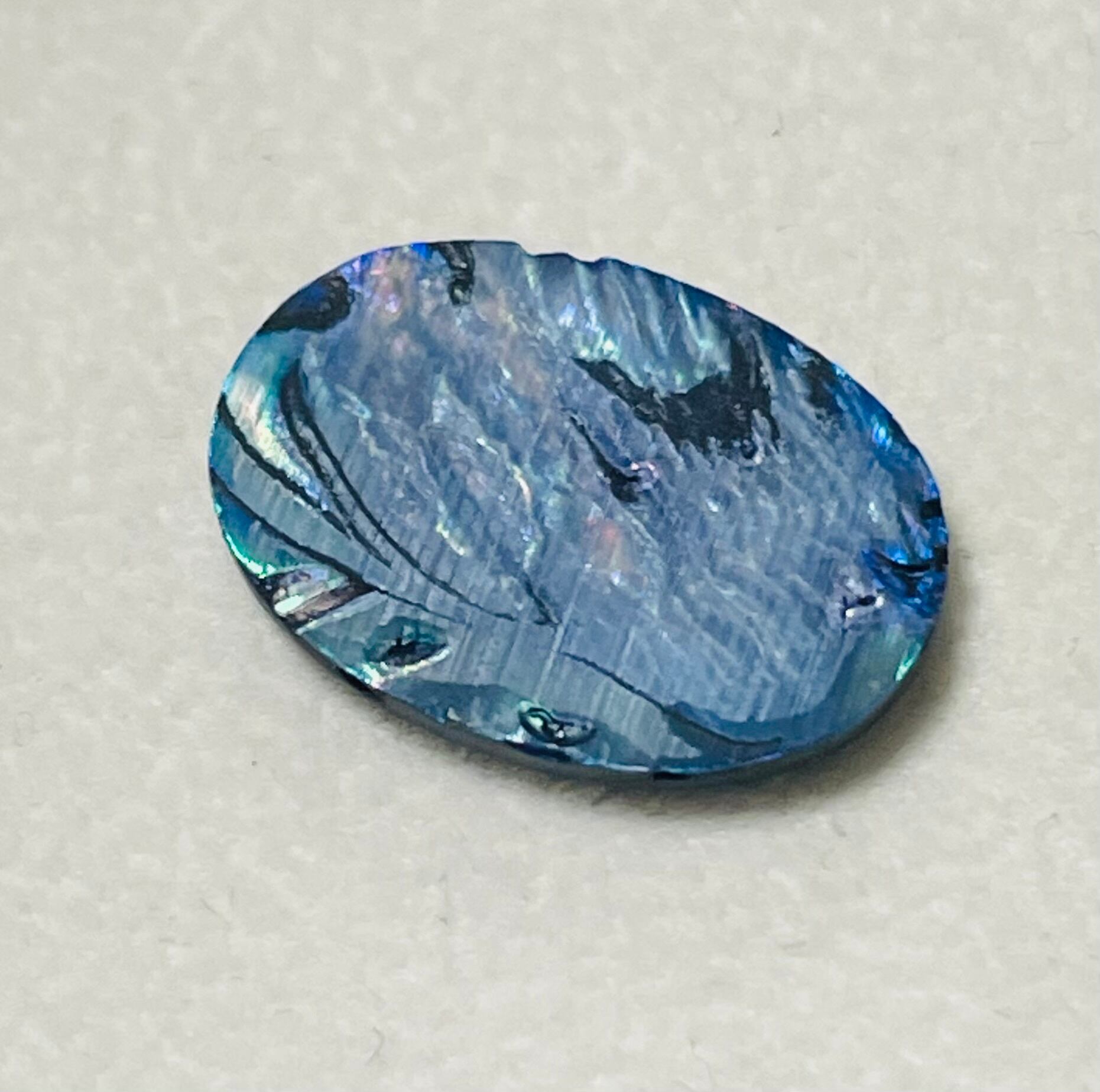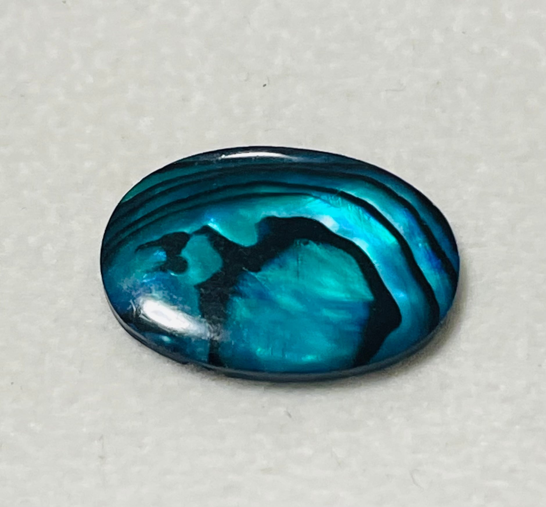 アワビ貝をくり抜いたルース。独特の青い真珠光沢と