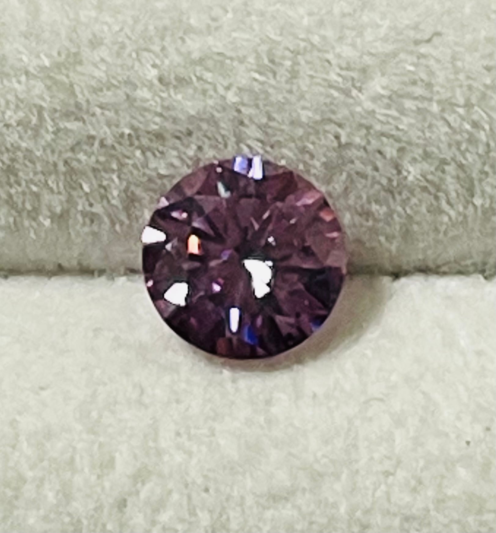 少し紫がかった落ち着いたピンク色の合成モアッサナイトです。