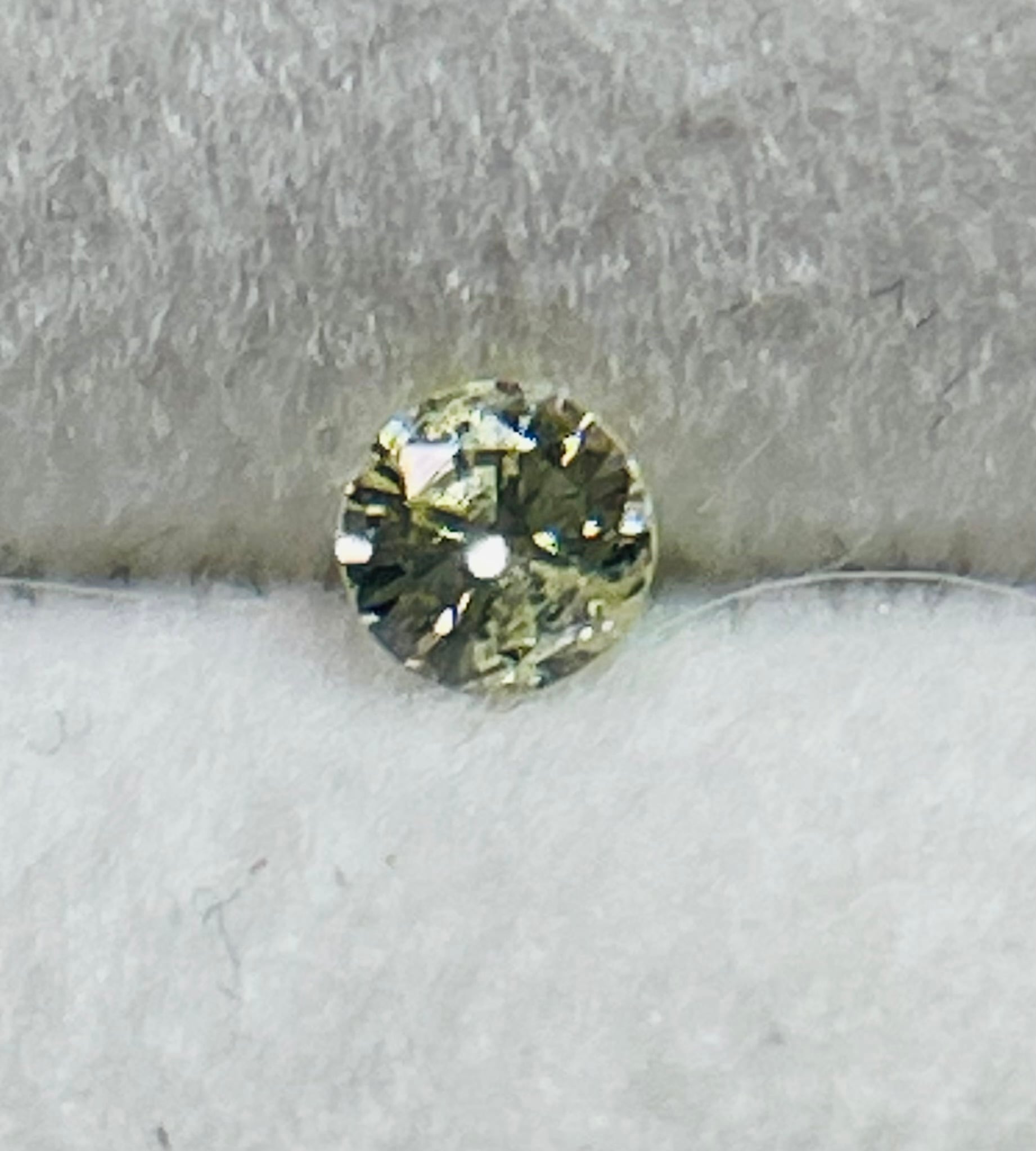 薄いイエローのダイヤモンド。カットよく、照りもよいですが