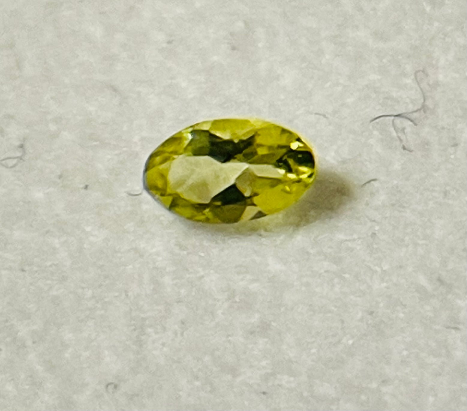 淡いカナリーイエローのトルマリン。表面キズと細かいインクルージョンが