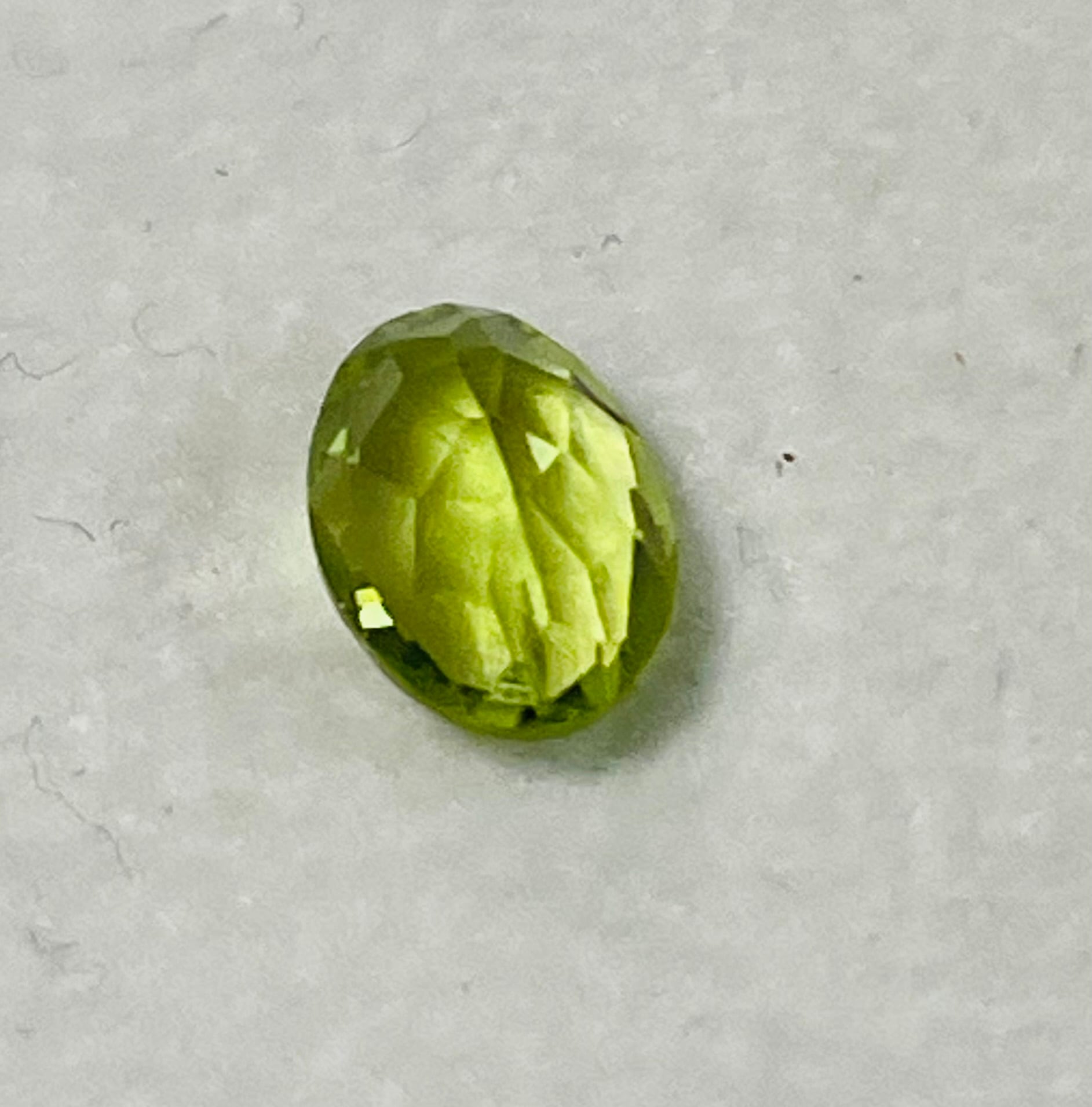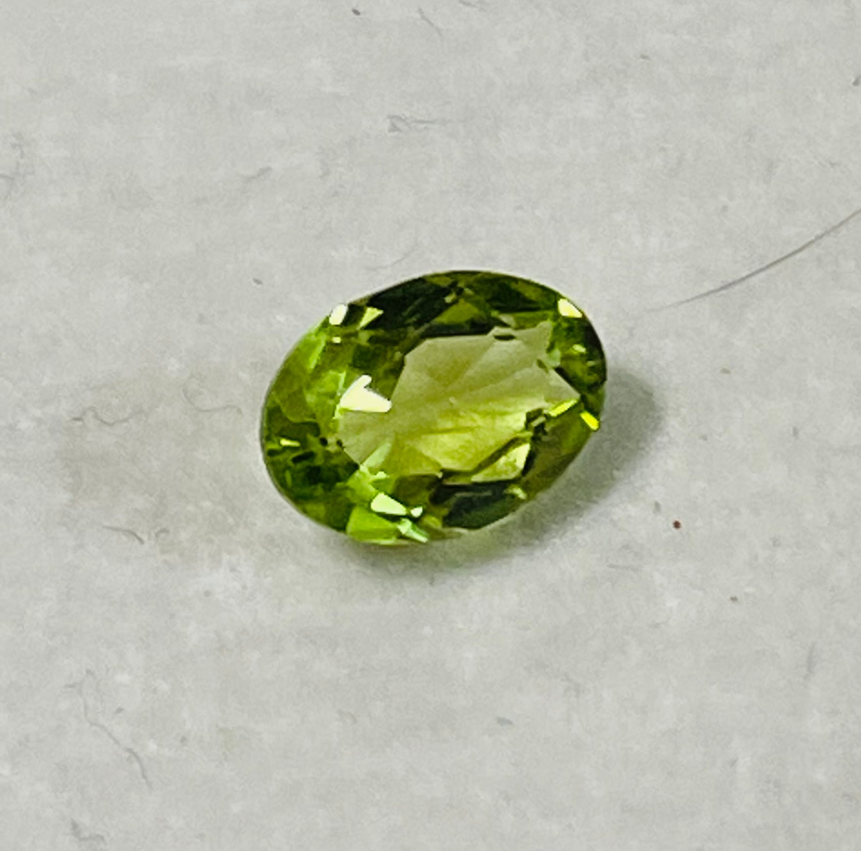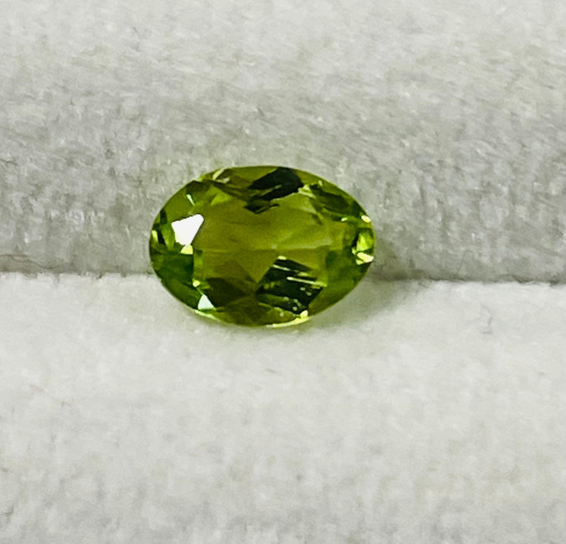 鮮やかなイエローグリーンのペリドット。インクルージョンは少なめで透明度は