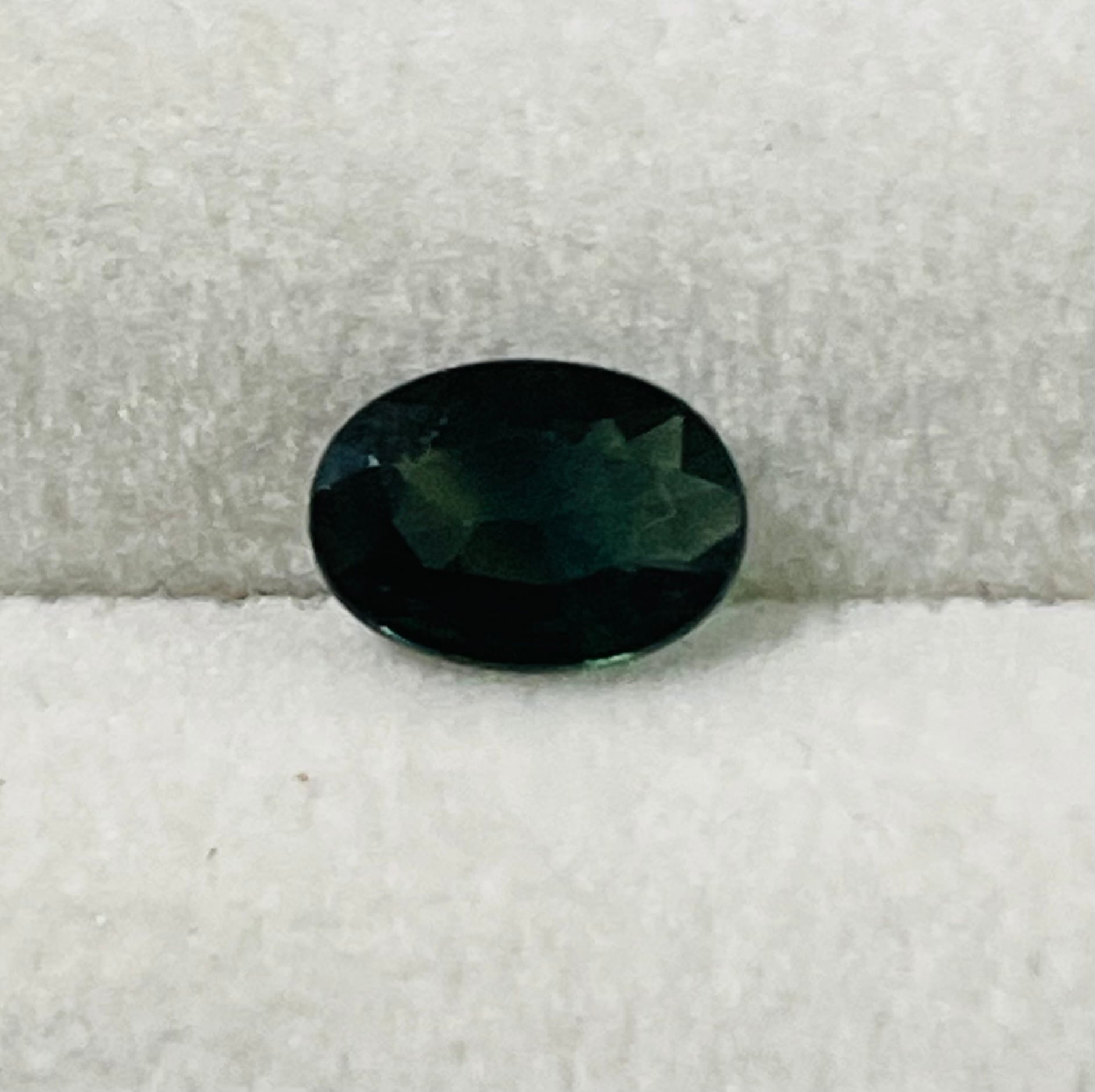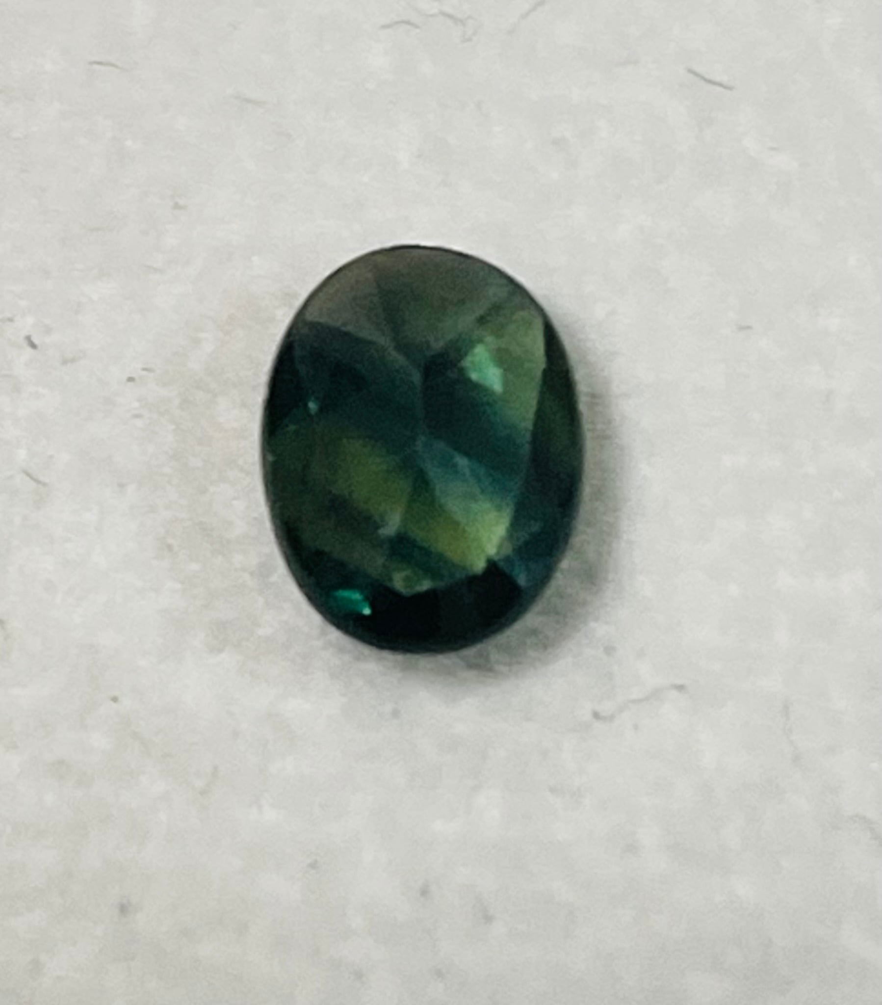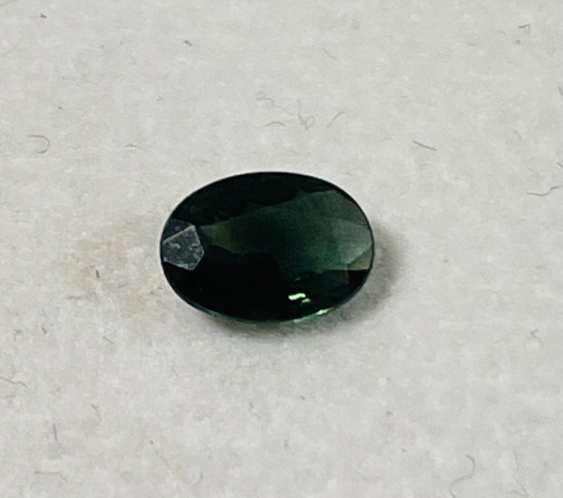 ダークグリーンのサファイア。細かい黒いインクルージョンが入っており