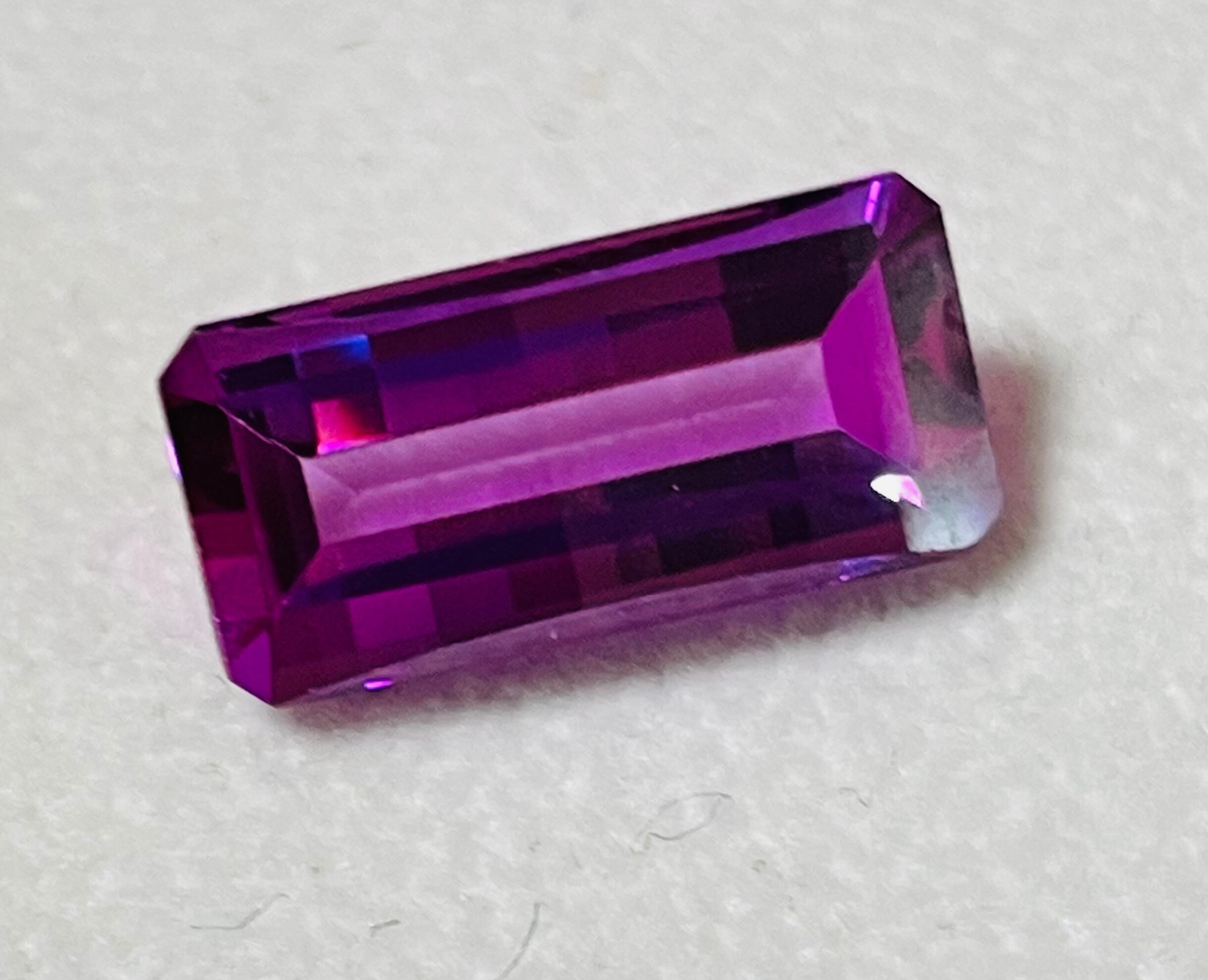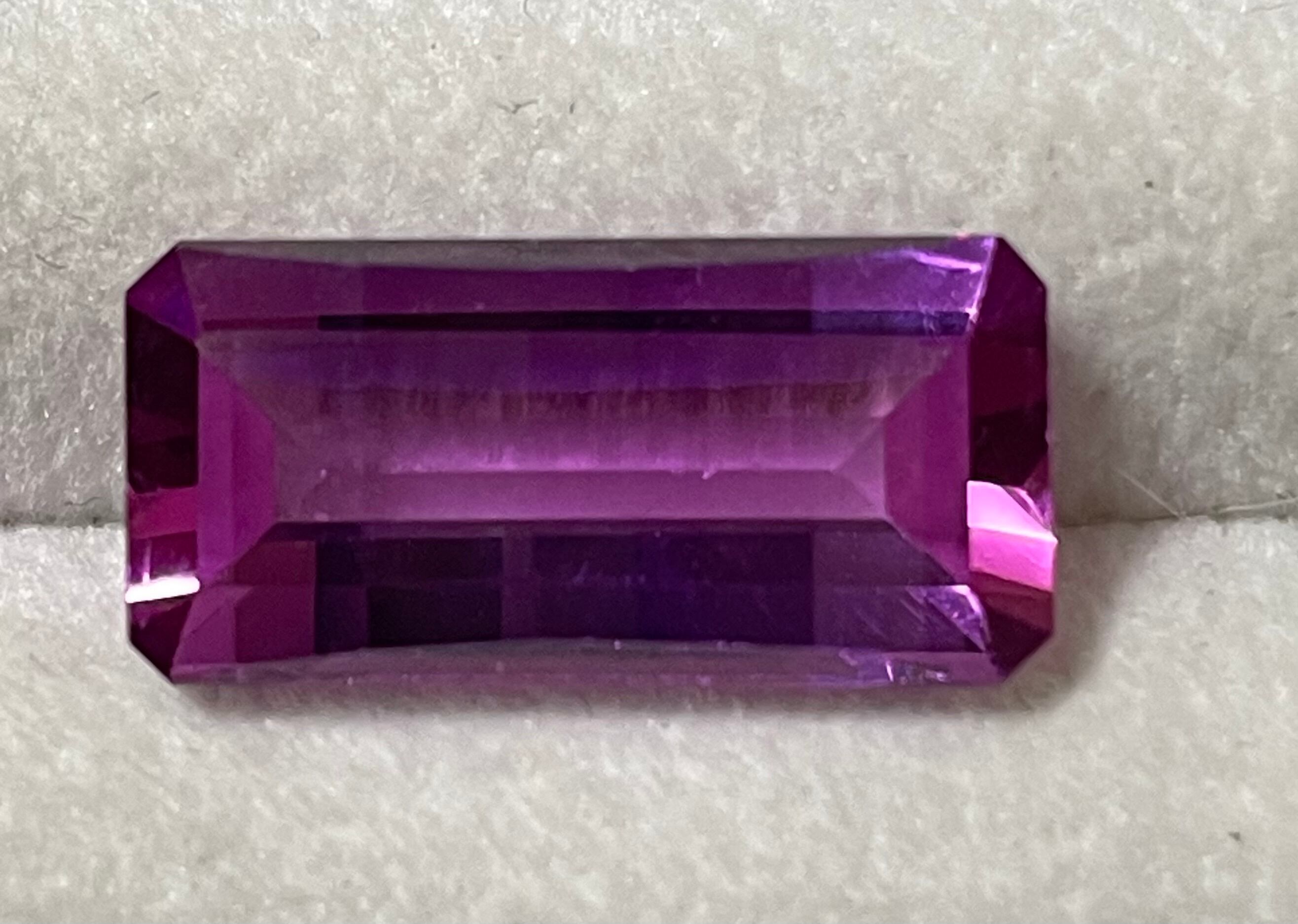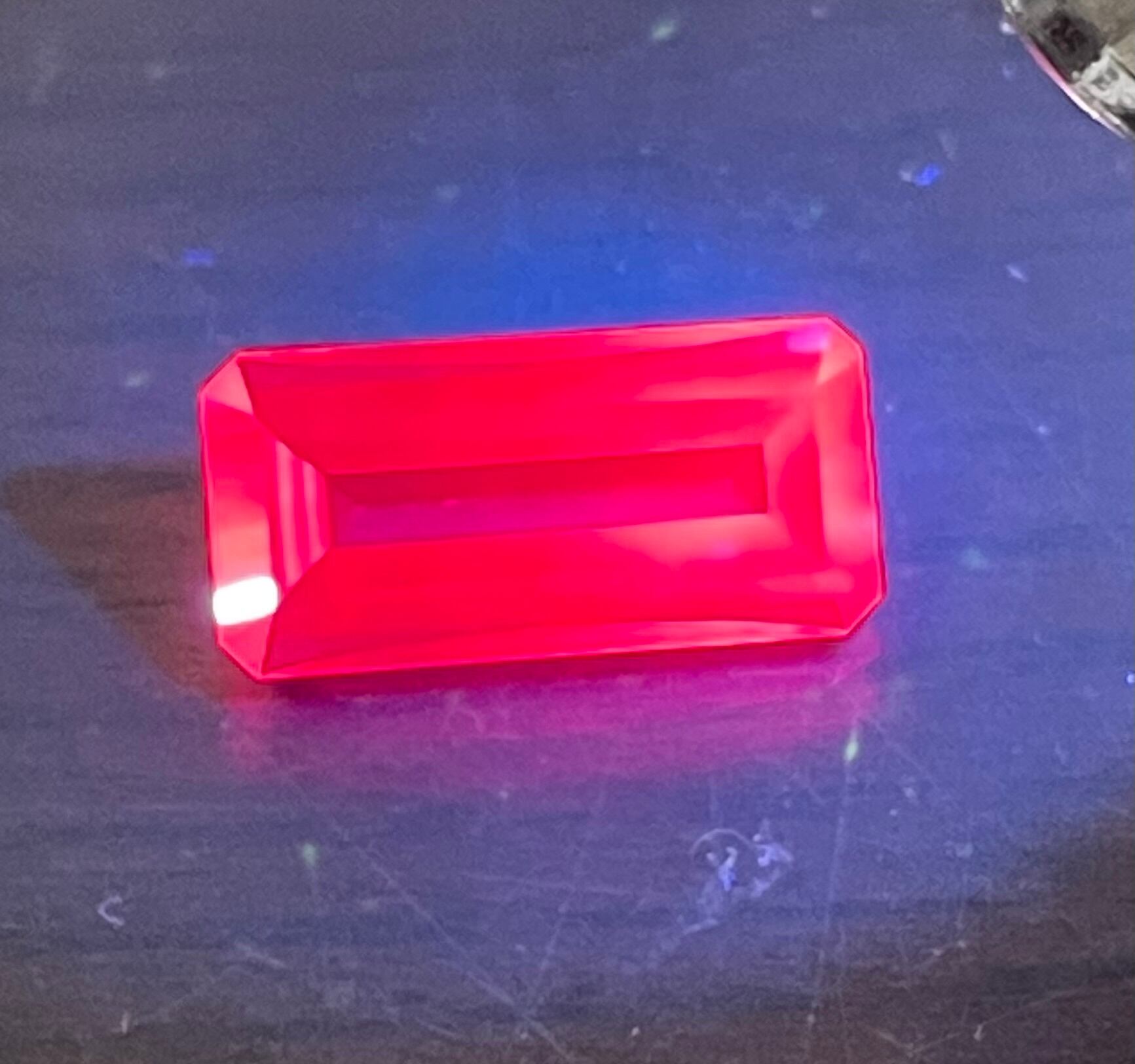 鮮やかなピンク色の合成サファイアです。真っ赤な蛍光反応を示します。