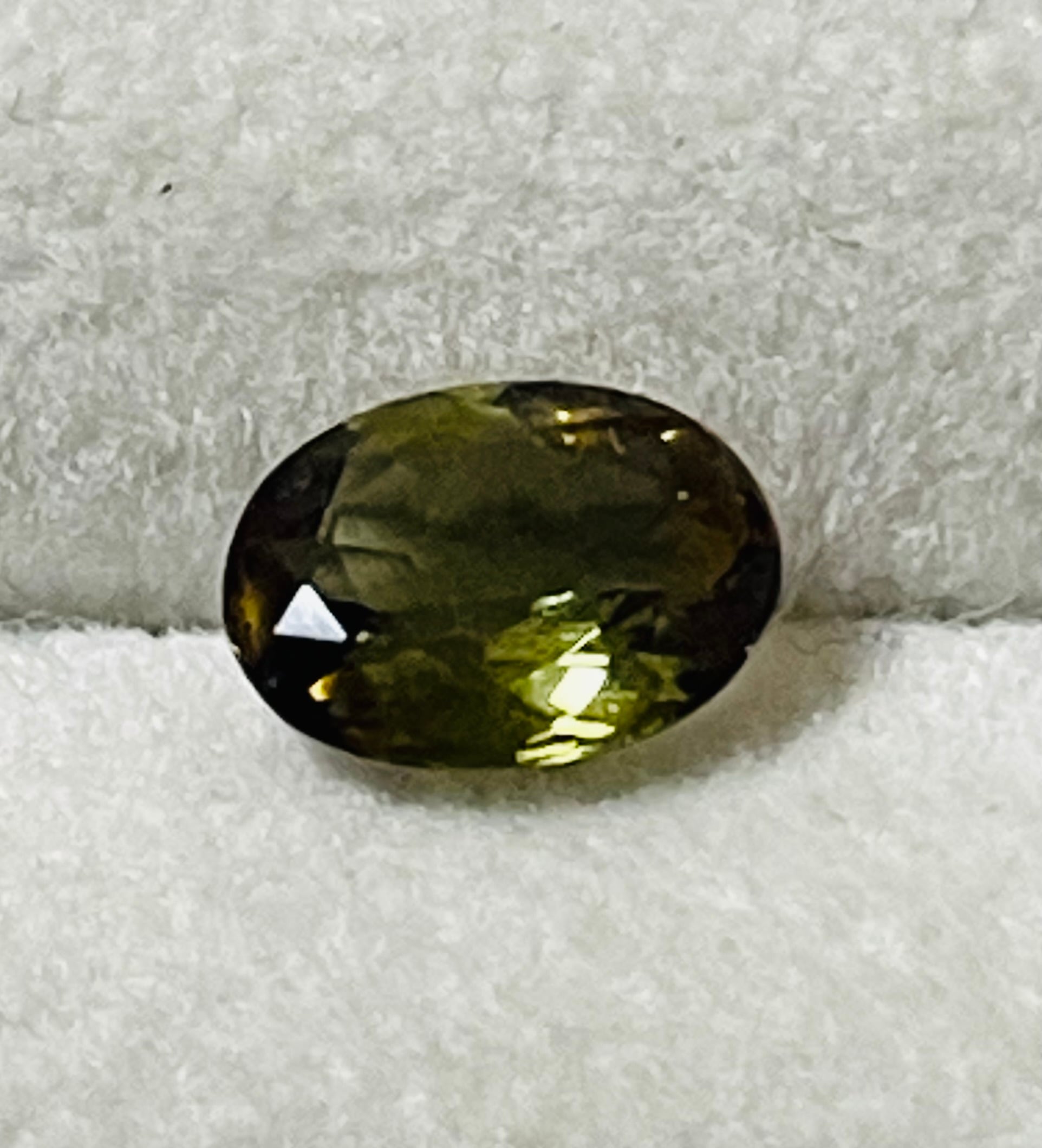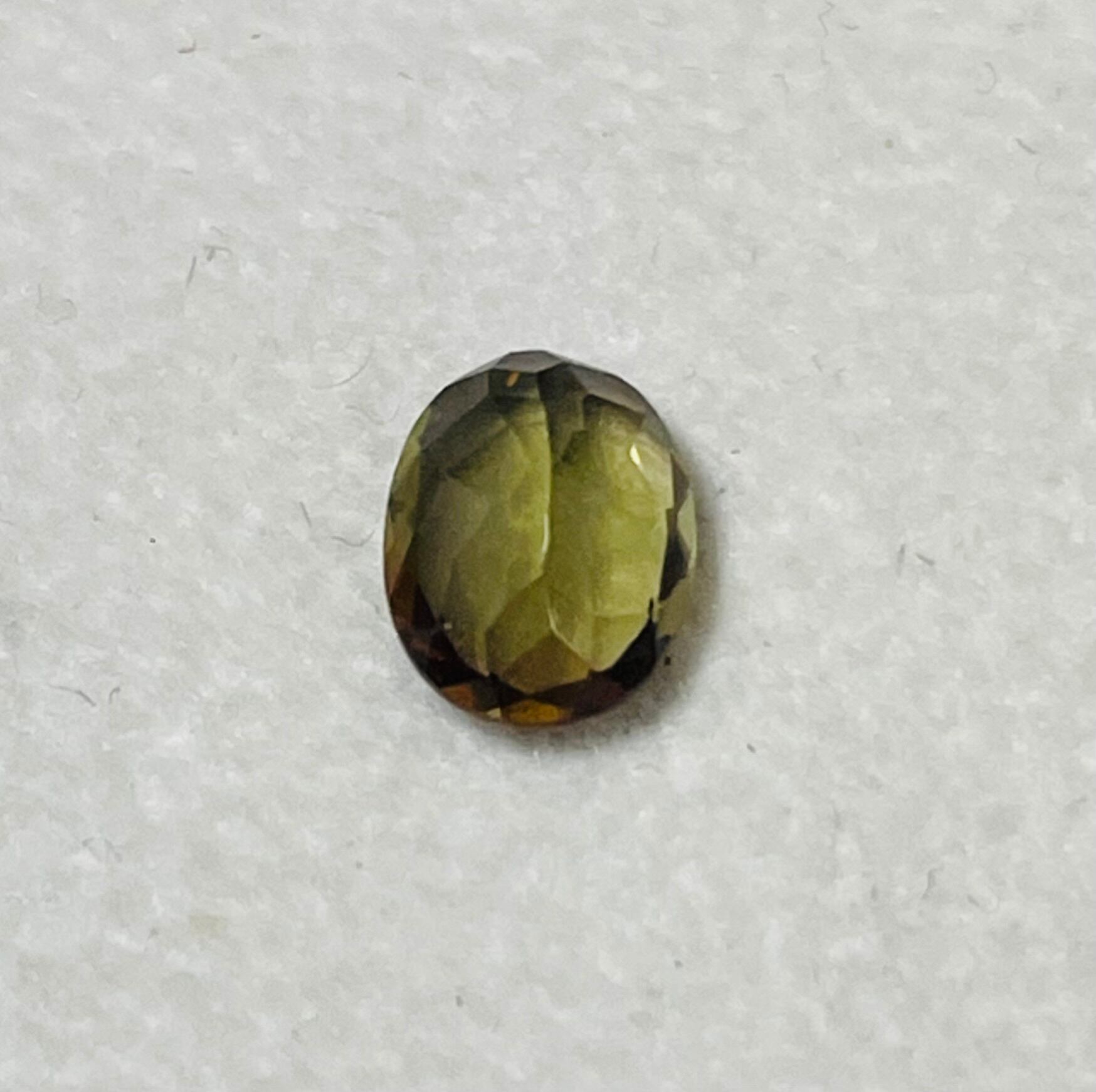 オリーブグリーンのアンダリュサイト。顕著な多色性が見られます。
