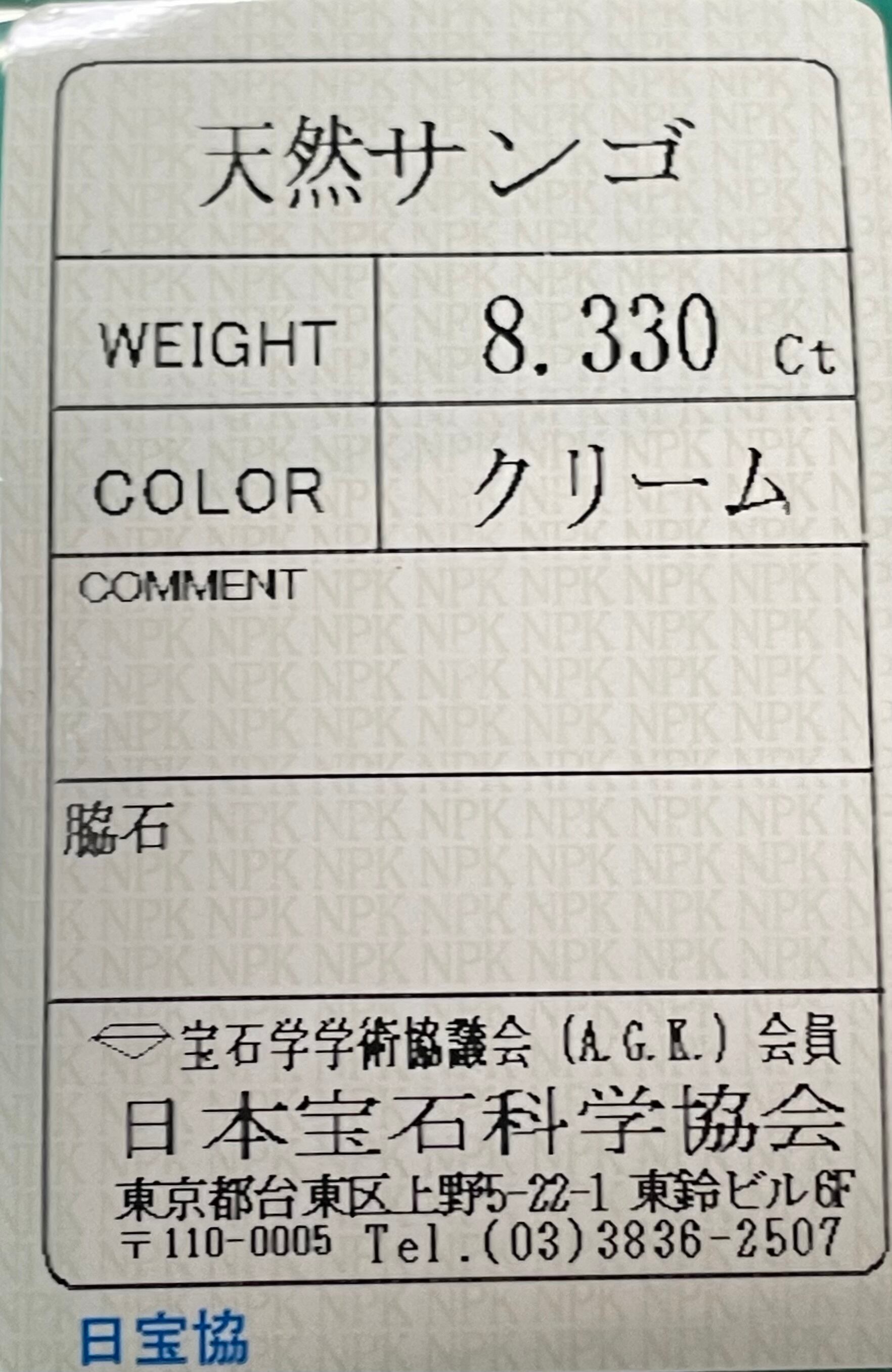 ホワイトコーラル 8.330ct ソーティング付