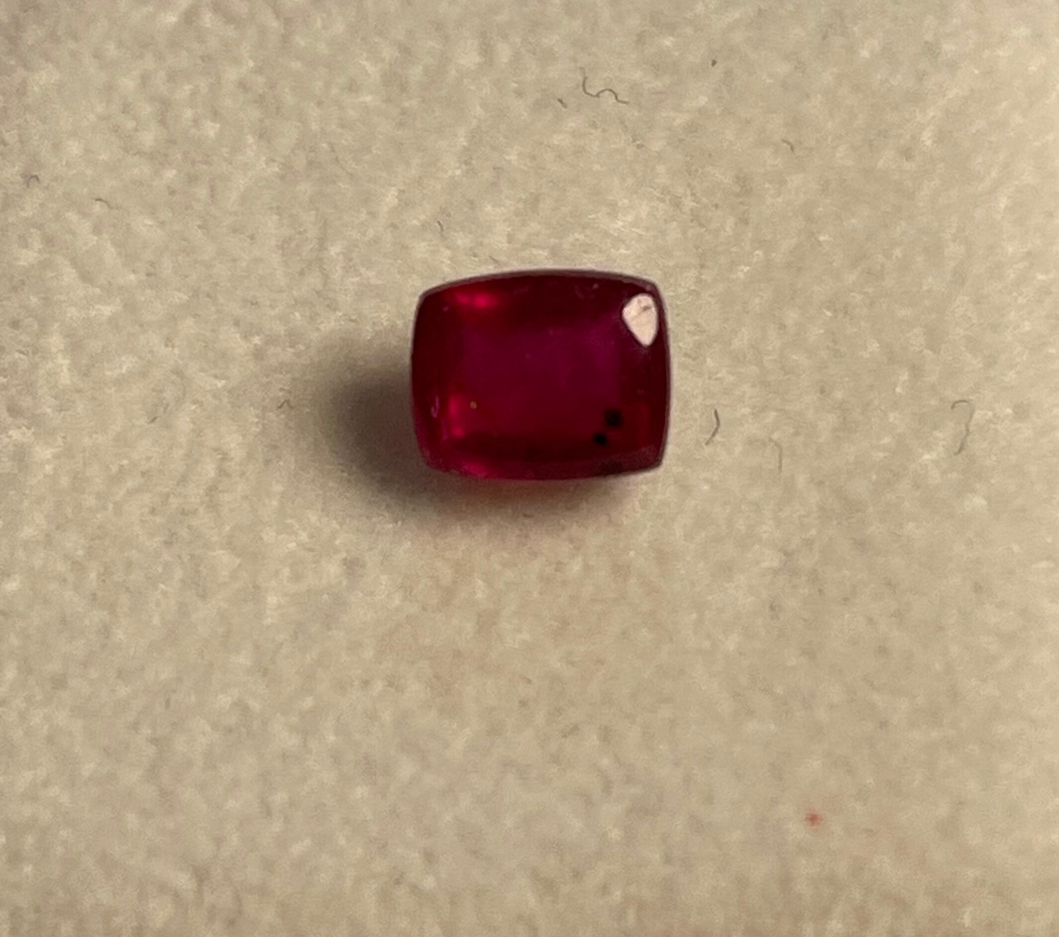 少し歪ですが、シュガーローフカットのルビーです。鉛ガラスの含浸処理がしてあります。