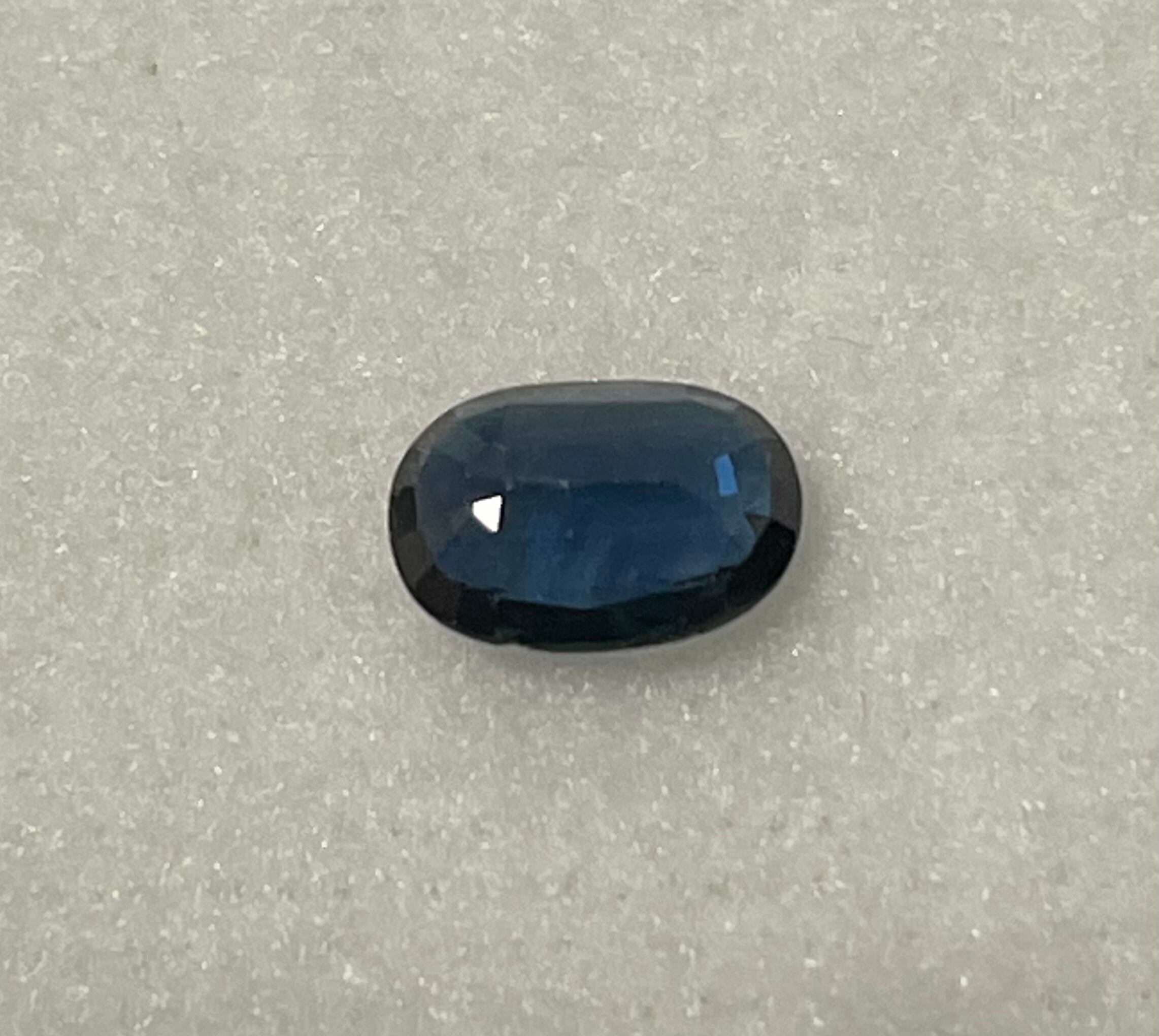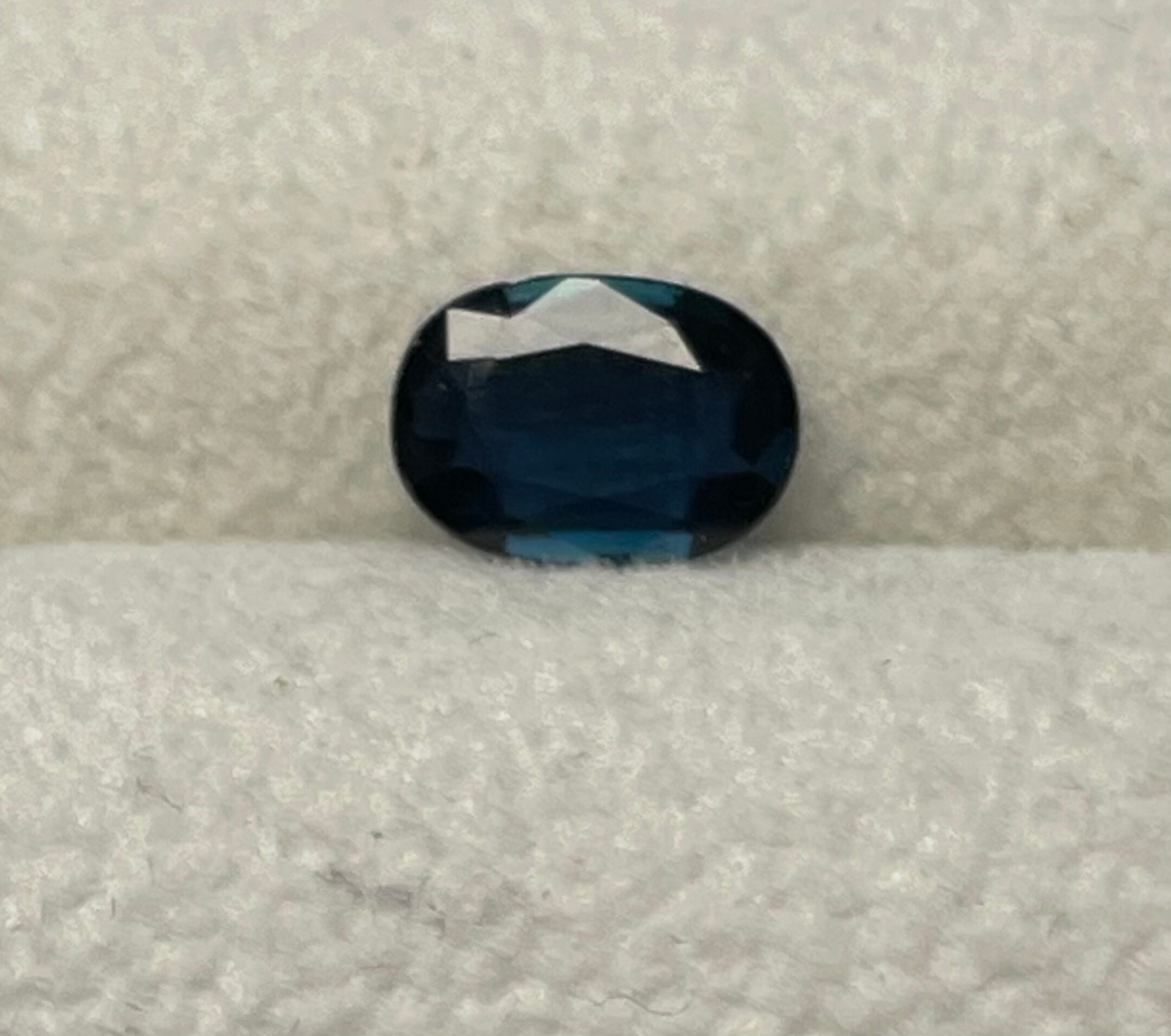 深いインクブルーのサファイア。インクルージョンはありますが目立ちません。