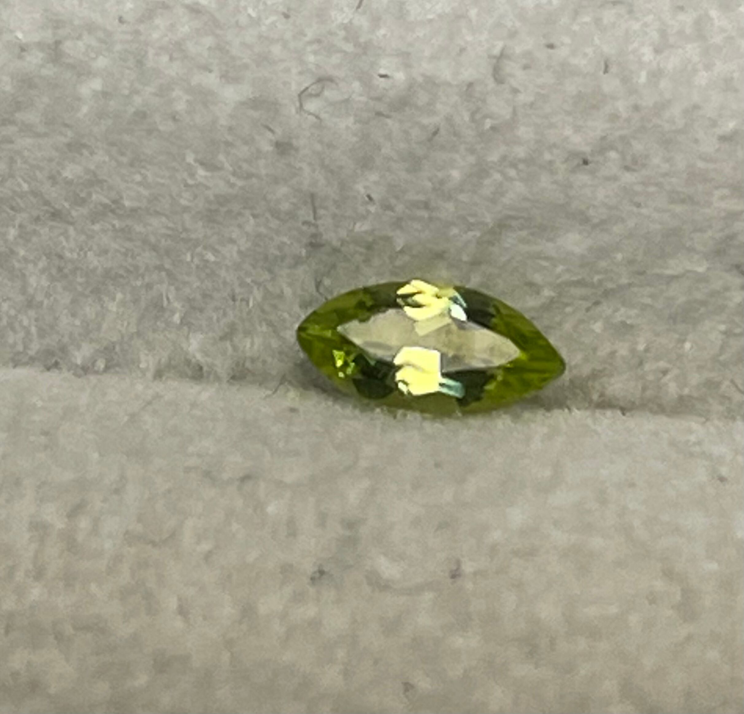 小さいペリドット。緑色の中にも黄色みが強く、照りがあります。