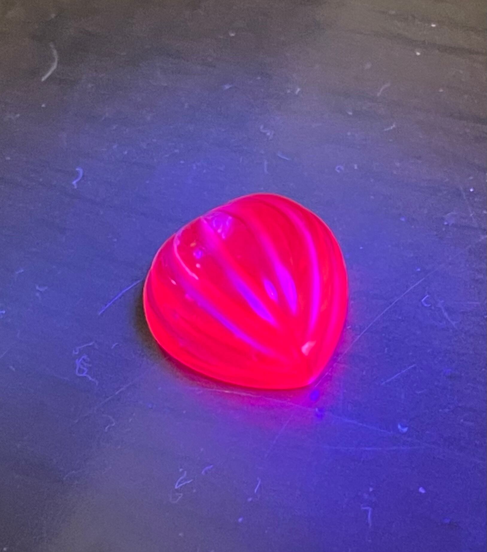 ピンクがかったパープルで、真っ赤な蛍光反応を示します。