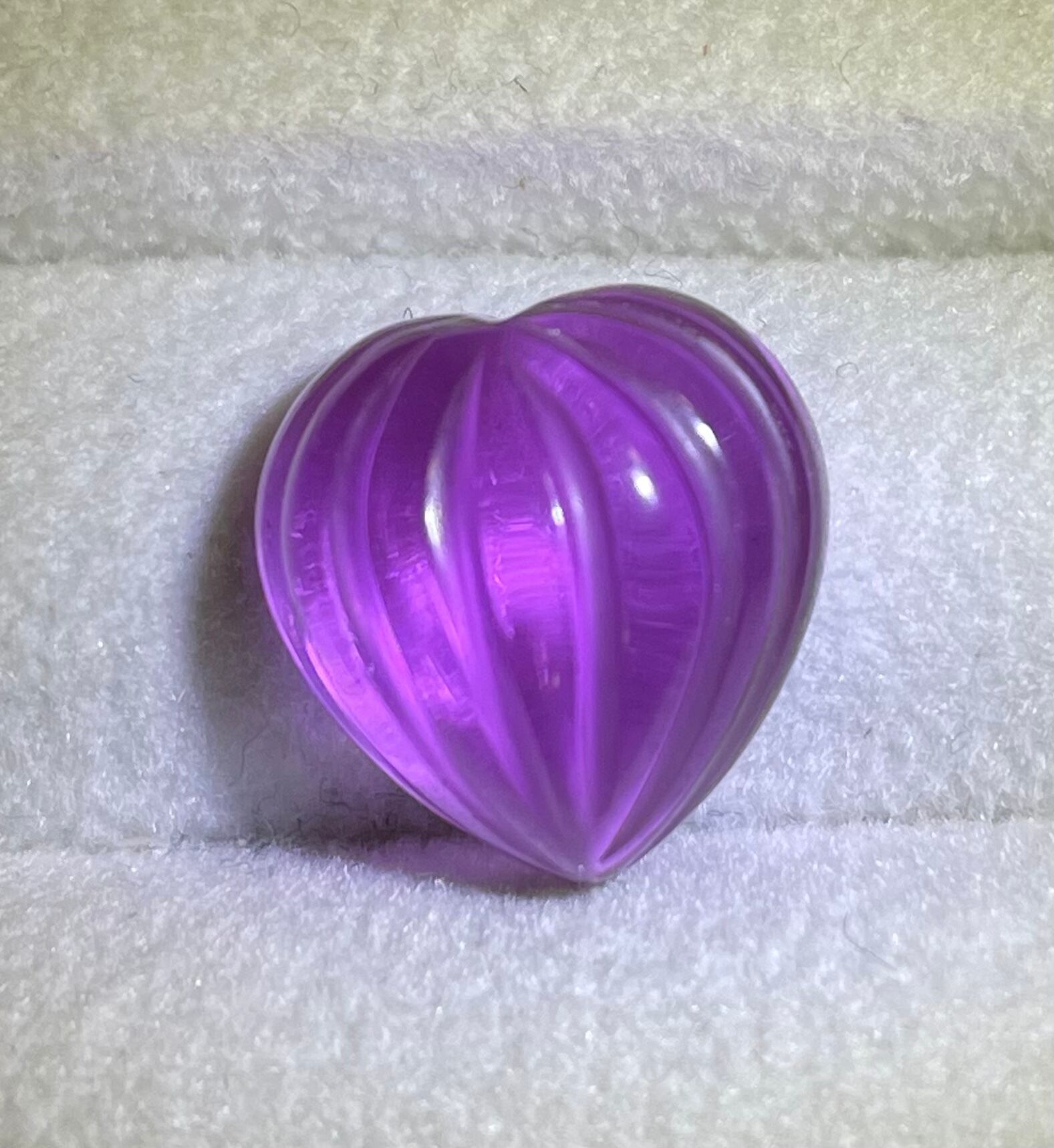 ぷっくりとしたハートの合成サファイア。線が入っています。