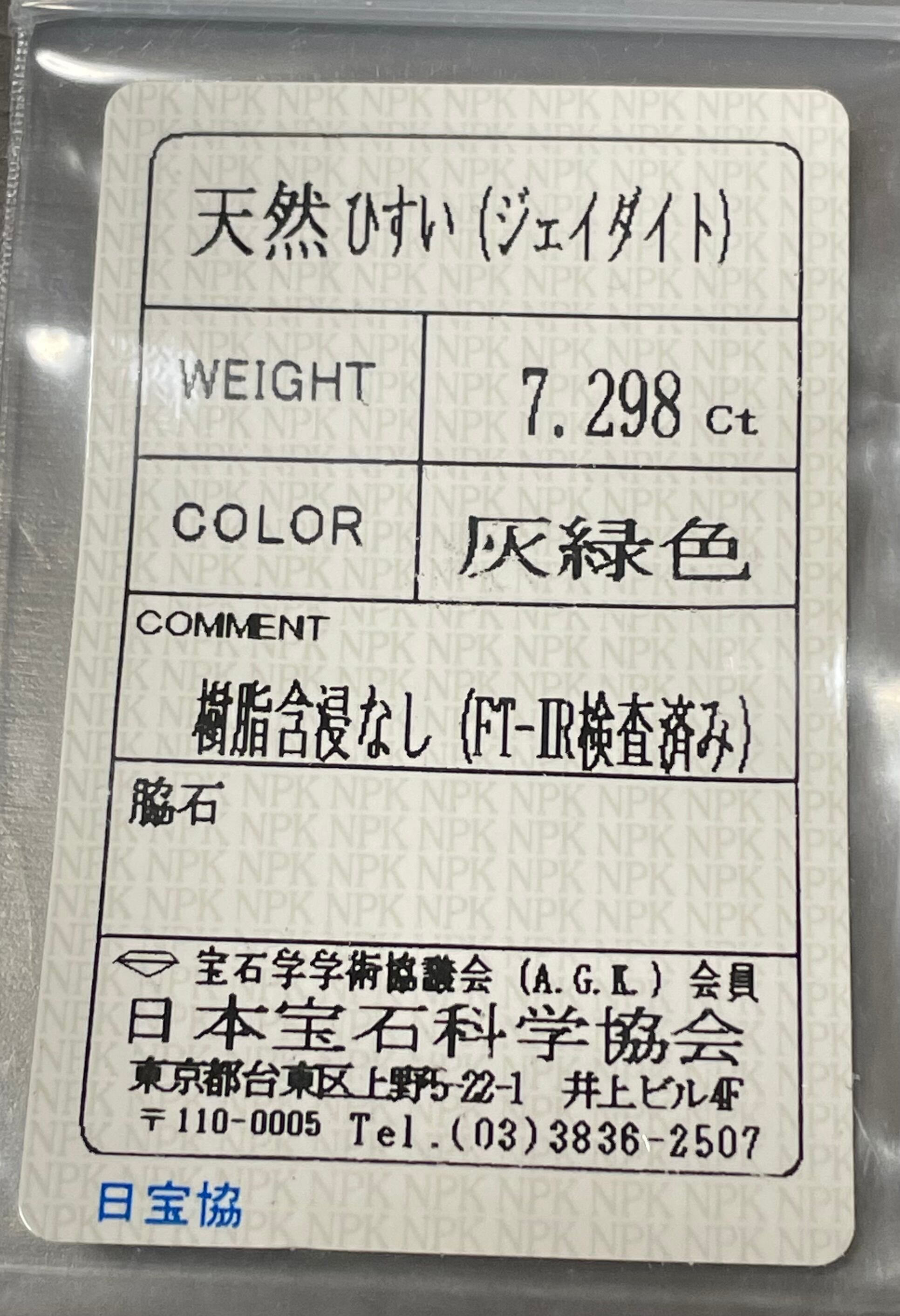 グリーンジェイダイト 7.298ct ソーティング付
