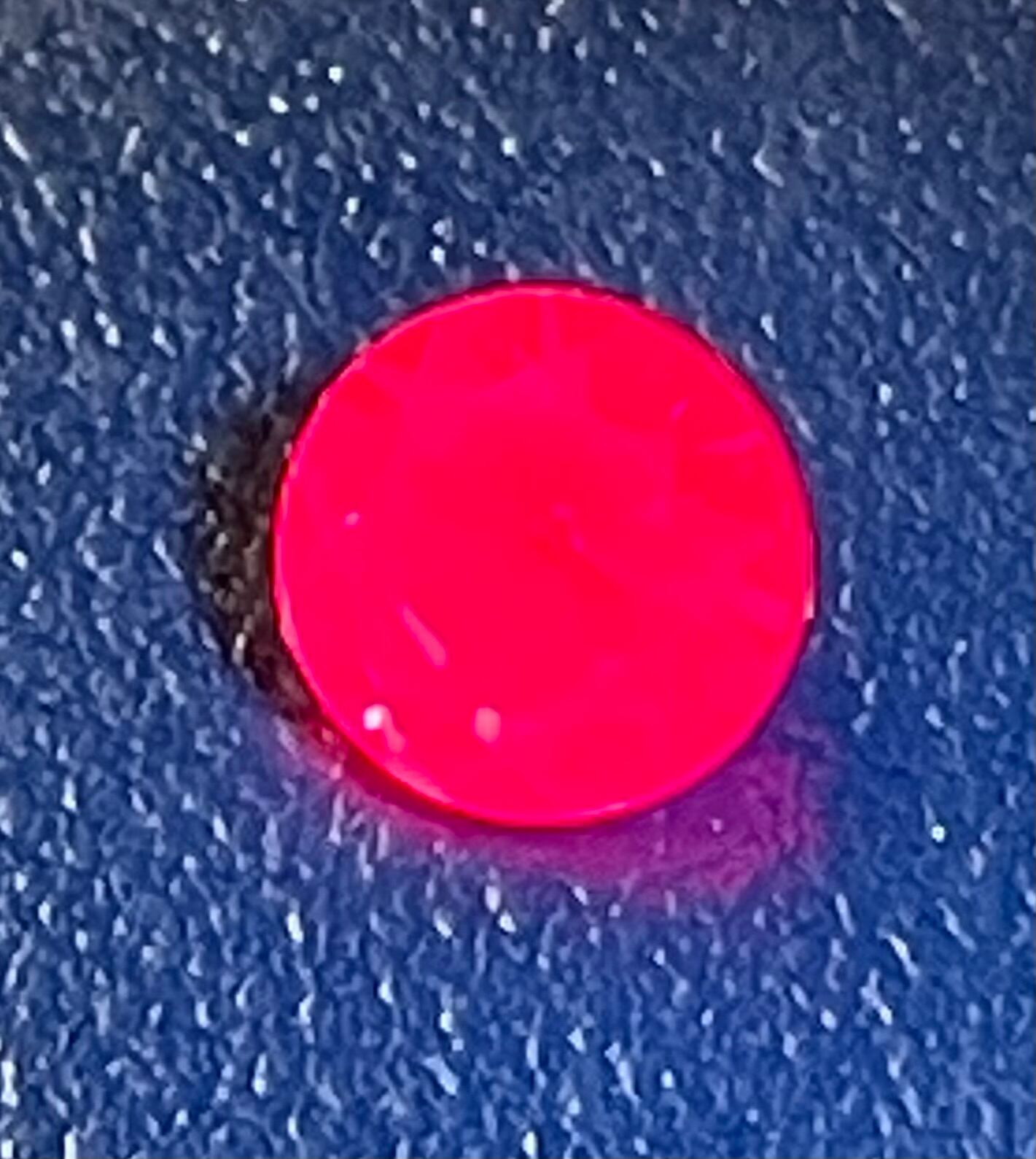 綺麗な赤色の合成ルビー、鮮やかな蛍光反応を示します。