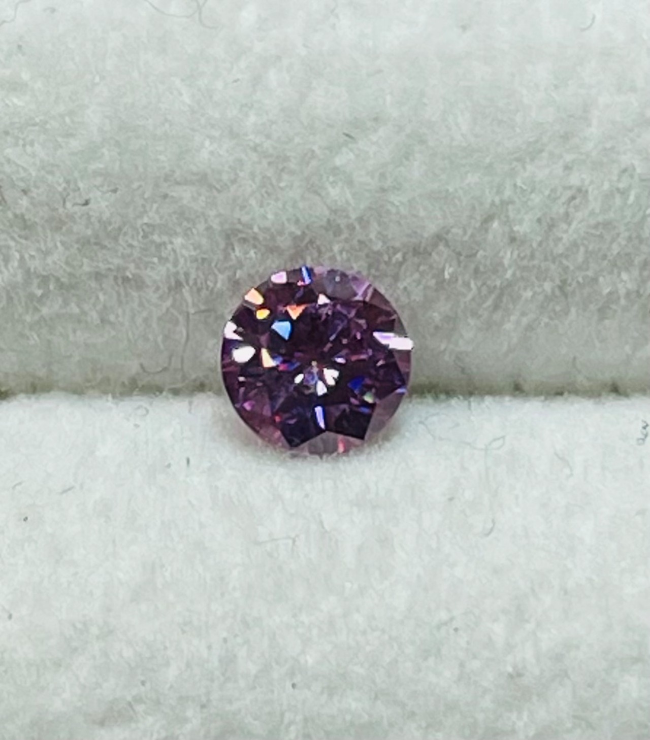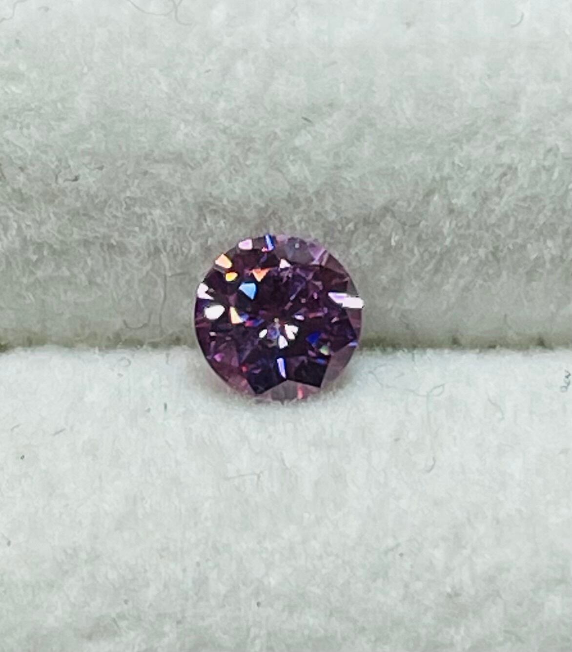 少し紫がかった落ち着いたピンク色の合成モアッサナイトです。